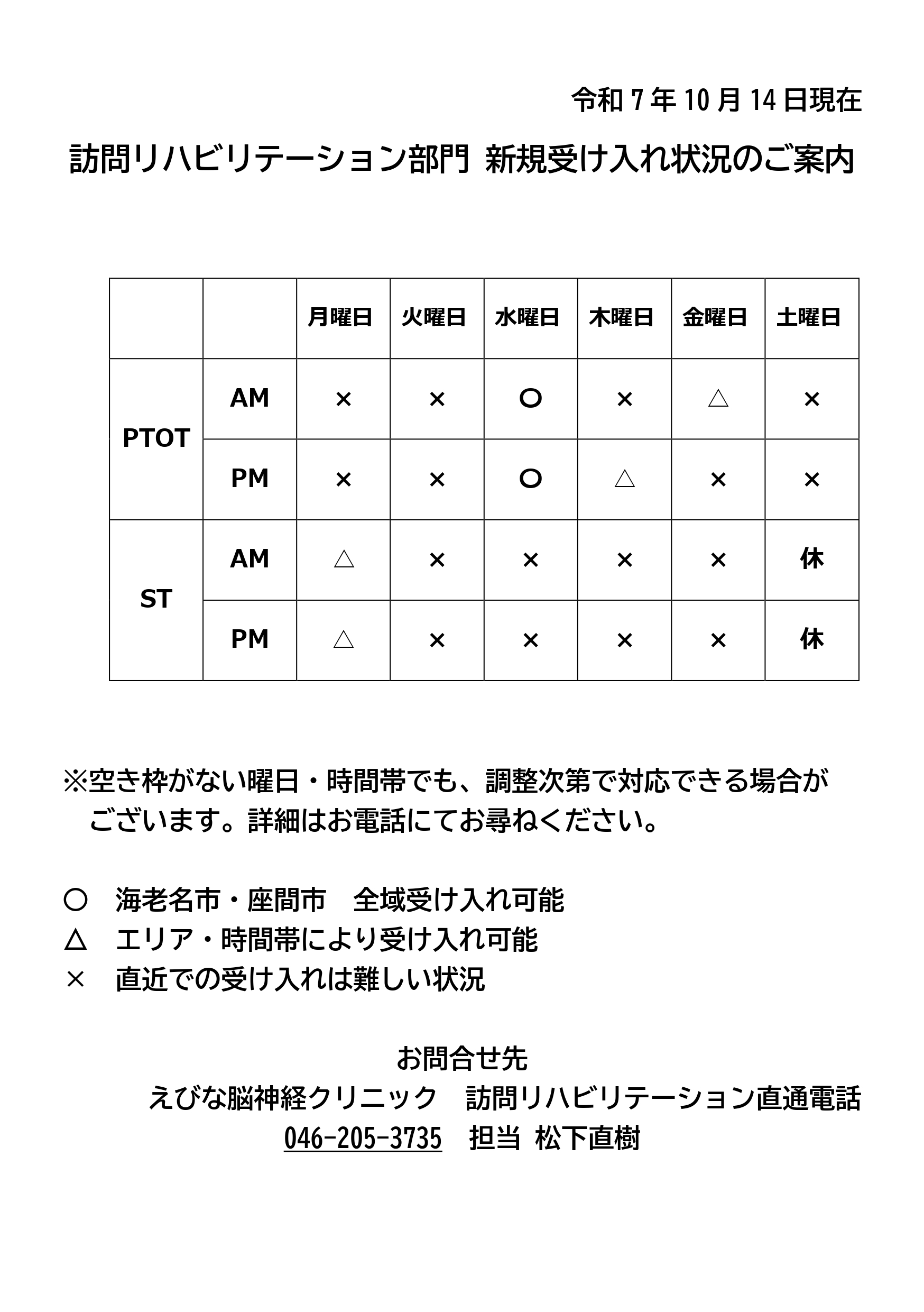 - 火曜日〜金曜日:午前 × / 午後 ×