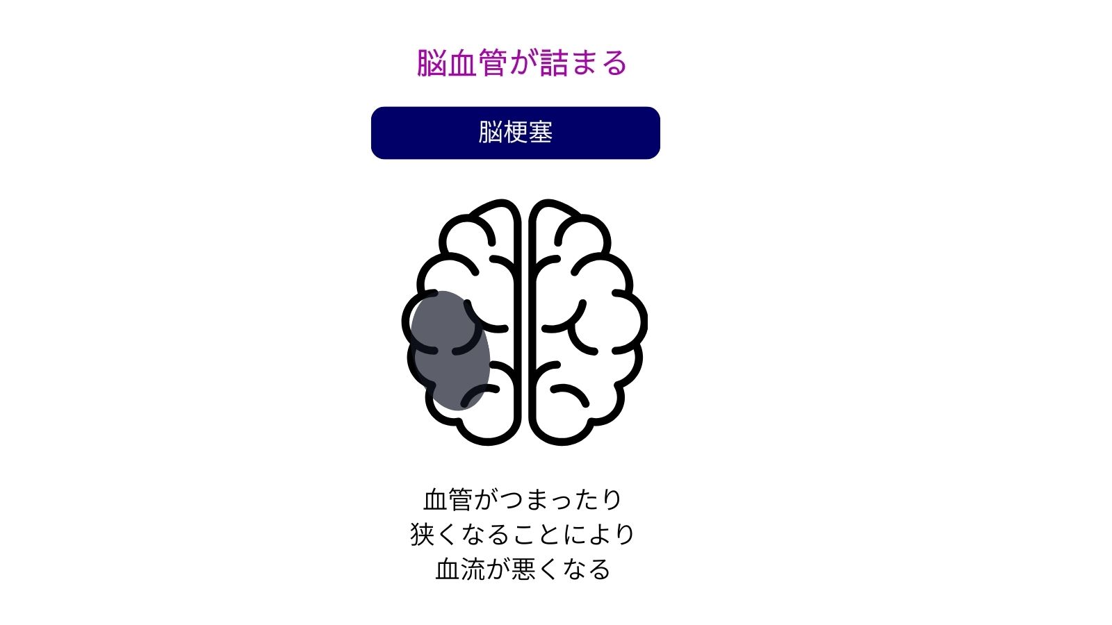 脳梗塞は、脳内の血管が詰まって血液が流れなくなり、酸素や栄養が届かなくなった脳組織が壊れてしまう状態を指します。